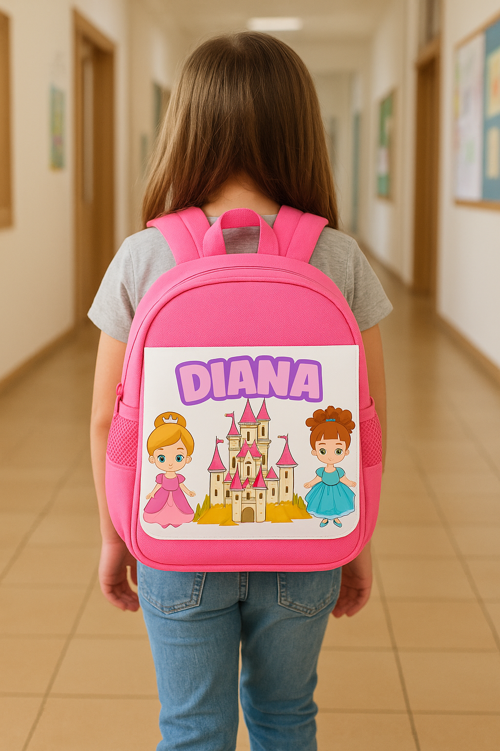 Medidas:26x29x9 cm. Disponen de 2 tirantes acolchados ajustables con hebillas de plástico. Asa de transporte para colgar. Bolsillos laterales, uno con solapa y otro con rejilla para poder colocar botellitas o zumos. Bolsillo frontal bajo la solapa con velcro. Interior acolchado sin compartimentos. Todas nuestras mochilas son personalizadas a tu gusto con imágenes y nombres.