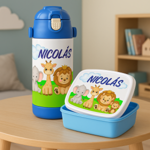 Fiambreras aptas para consumo alimentario. Libre de BPA. Medidas 18,5 x 13 x 6 cm. Material: tapa con aluminio, base de plástico. Botella Material: acero inoxidable de alta calidad. Mantiene la temperatura de las bebidas frías o calientes durante horas. Capacidad: 600 ml.